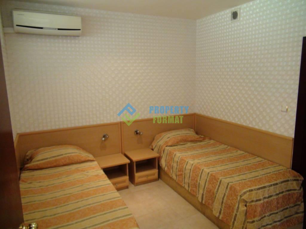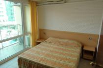 Солнечная квартира обставленная практичной мебелью и бытовой техникой. Гостиная разделена на зону отдыха и кухонную часть, есть выход на террасу. Одна из спален располагает личным санузлом, а вторая выходом на балкон. Апартамент оборудован кондиционерами в каждой комнате. Вид с террасы на территорию комплекса с бассейном. Прекрасный вариант для отдыха в Болгарии, а благодаря близости к морю, множеству удобств и развлечений – Planeta Miramar Palace отличное и удобное место для семейного отдыха.