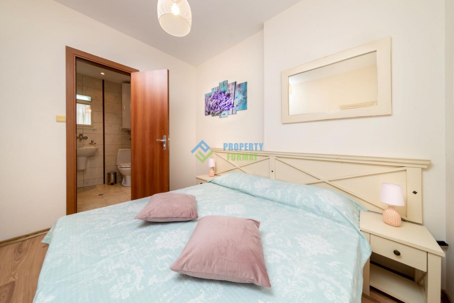 Предлагаем на продажу полностью меблированную и оборудованную трехкомнатную квартиру, расположенную на 2 этаже прекрасного комплекса. Квартира состоит из: гостиной с кухней, двух спален, двух ванных комнат, террасы. Жилая площадь 44,13 м2, общие части 8,66 м2, общая площадь 52,79 м2. Спальни квартиры расположены зеркально относительно гостиной и к каждой спальне примыкает свой санузел.