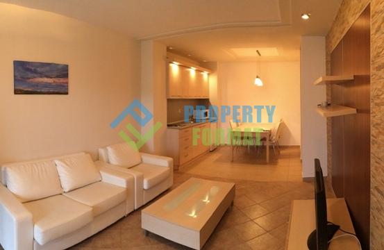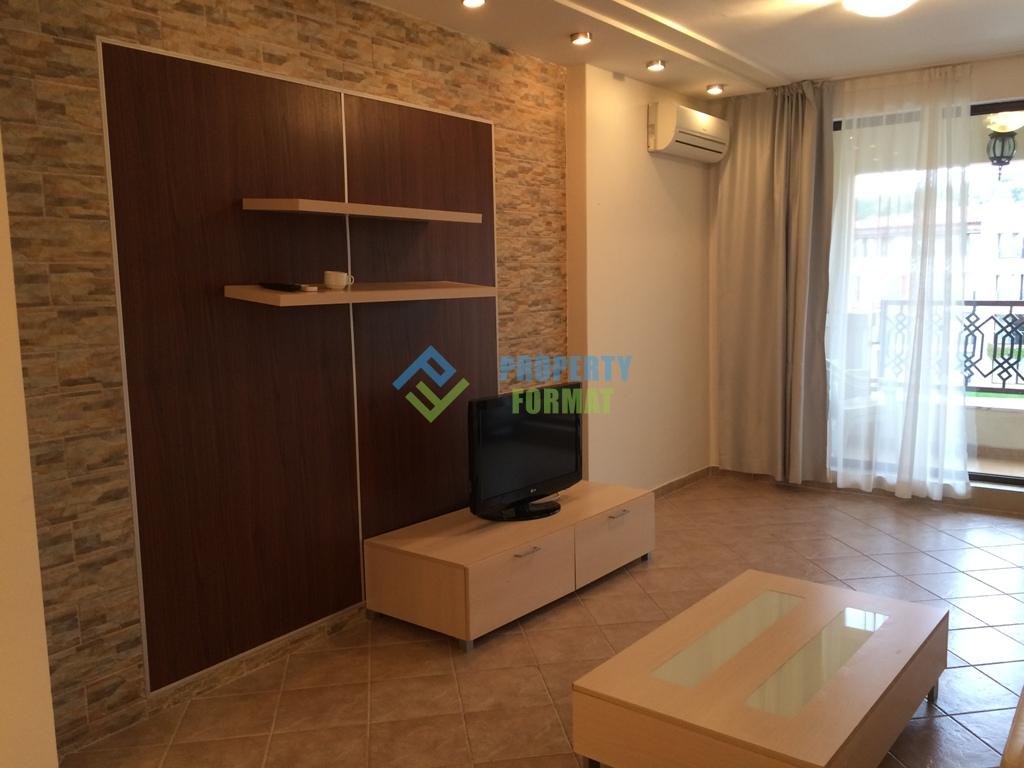 Уютная квартира с отдельной спальней располагает необходимой мебелью. Кухонный блок оборудован электроплитой, вытяжкой, микроволновой печью, холодильником. Установлен кондиционер и телевизор. На балконе будет приятно проводить время, наблюдая за окрестностями и миловидной территорией комплекса.